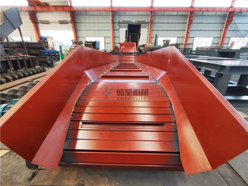 金屬粉碎機生產(chǎn)線鏈板輸送機生產(chǎn)現(xiàn)場